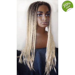 Long Lace Front Ombre Braided Wig in Medium Brown roots with blonde ends